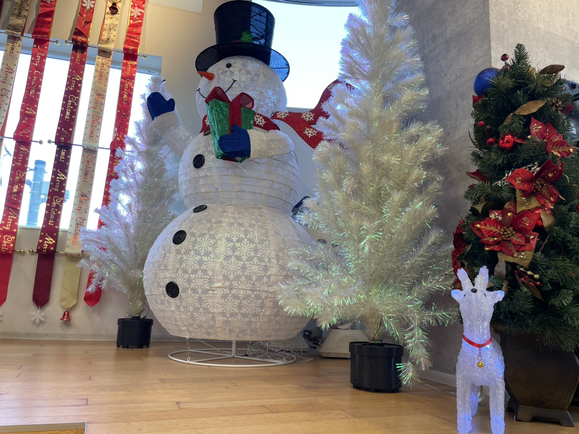 トナカイや雪だるまも生徒のみなさまをお出迎え。