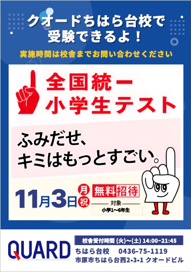 全国統一小学生テスト クオードちはら台校で受けよう!