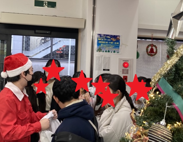 21日から先生たちがクリスマスコスチュームを着て校舎を盛り上げています。