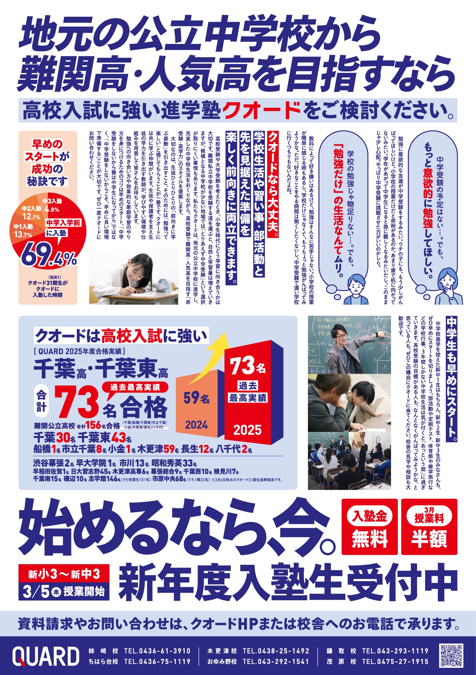 2025年(31期生)合格速報 | 千葉の本格進学塾QUARD(クオード)|高校受験に強い