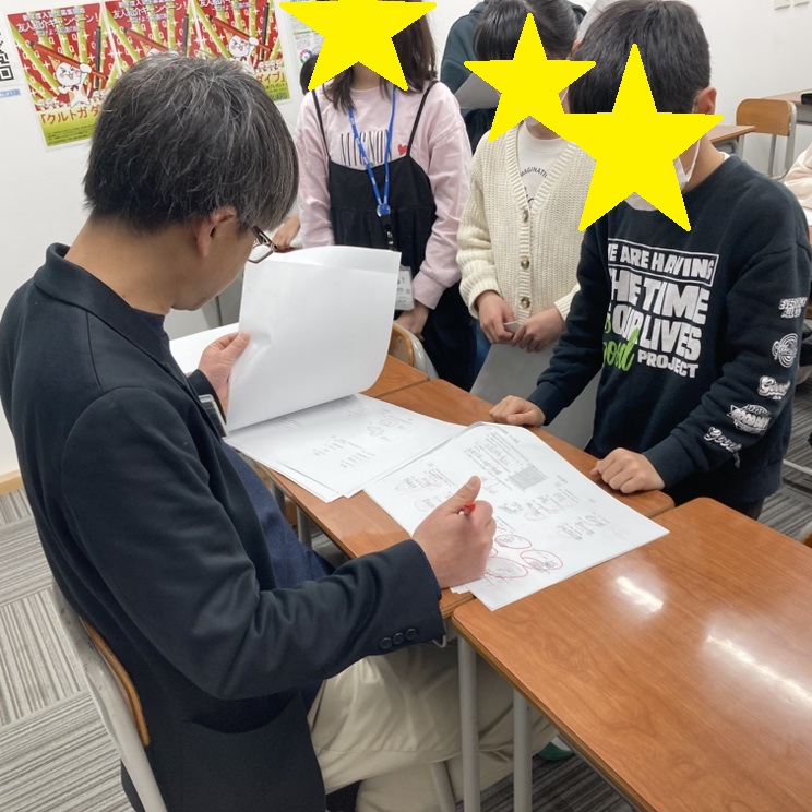 プリントを解き進める授業では、答えが出たら、「やった!できた!」という