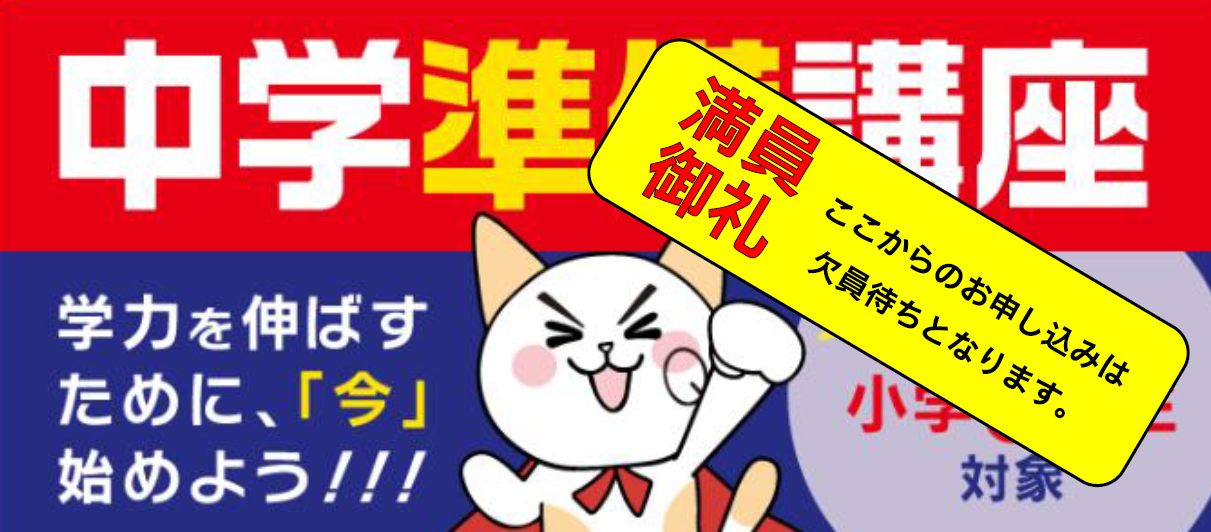 以前よりお申し込みを受け付けておりました中学準備講座ですが、この度定員に達しましたことをご報告いたします。